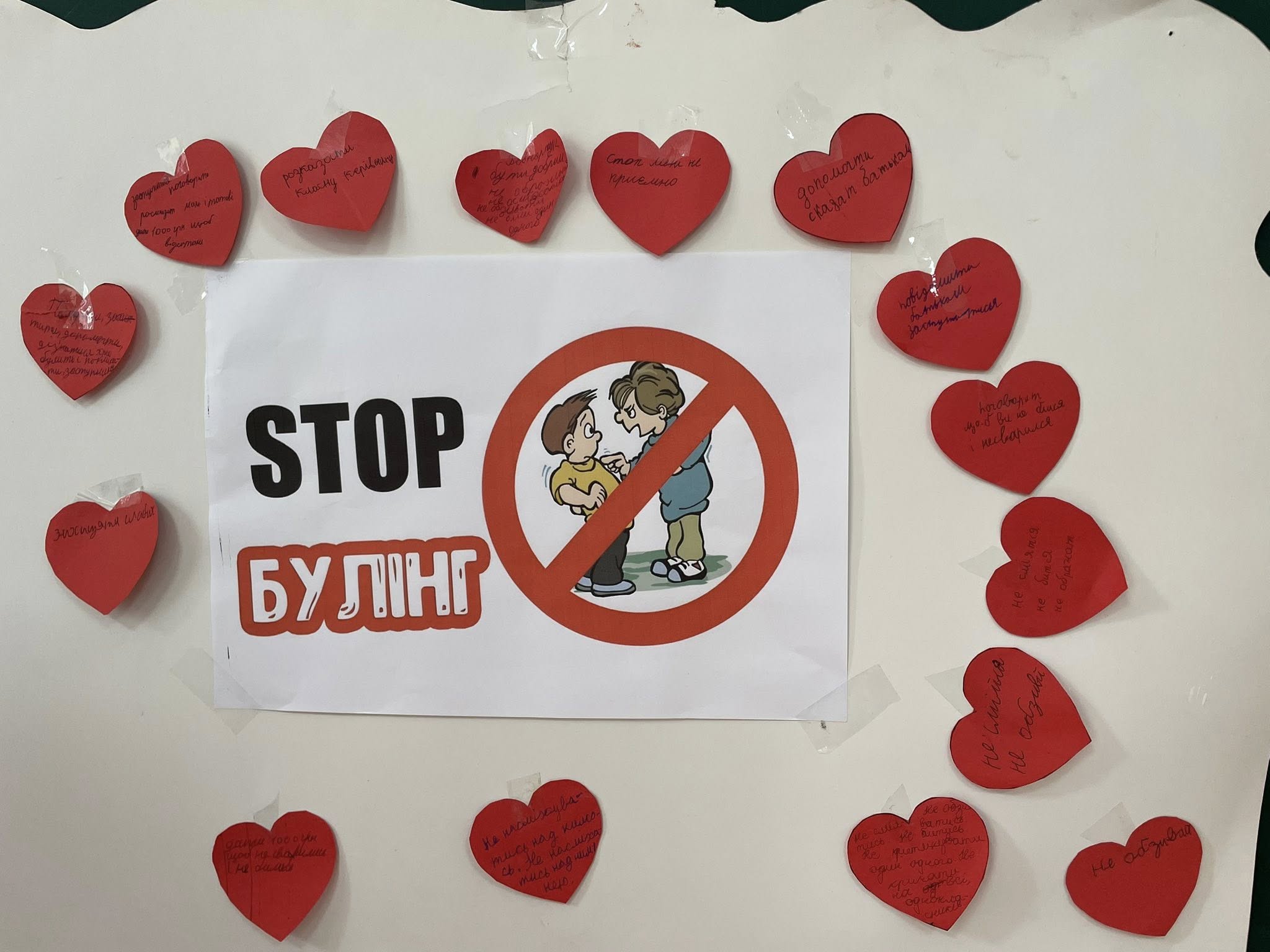 Наприкінці заняття кожен учень написав на паперовому сердечку, що він може зробити, щоб у школі не було булінгу ![]()